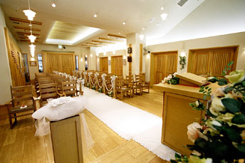 流氷を模したステンドグラスが輝くチャペルで、神聖なセレモニーを執り行ないます。聖歌隊のコーラスとパイプオルガンの音色に包まれて、ご家族・ご友人がお二人を祝福されることでしょう。